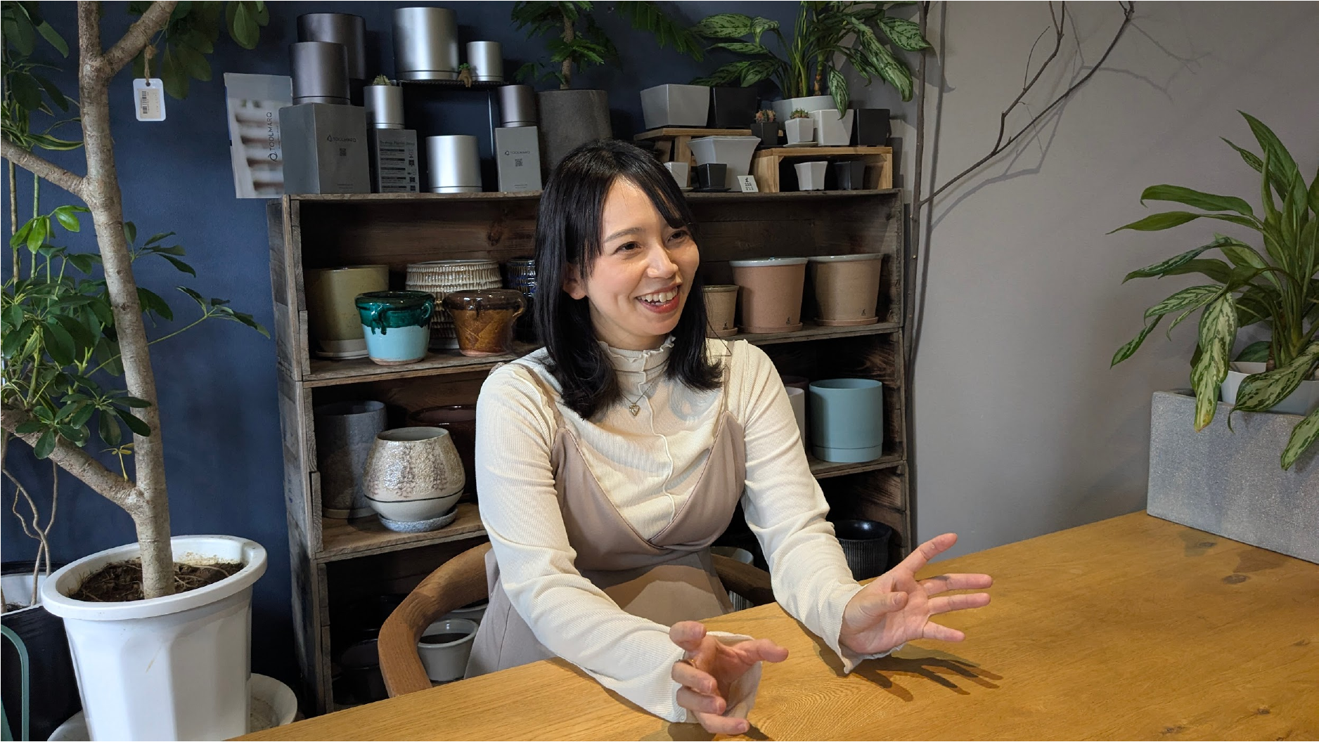 オープンは2024年の3月ですね。実家が林業をしていたのですが、ケガでその道に進むのは難しくなって……。それでも“緑と関わる仕事をしたい”という気持ちが強くて、造園屋で学んだのちに、園芸店に勤務し、そのあと現在の会社に入社してこのお店をオープンさせました。