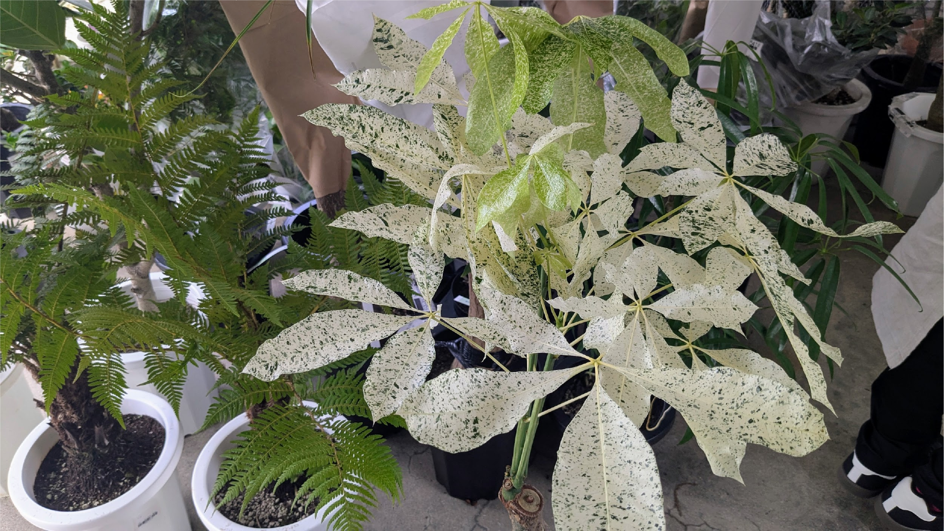 たとえば、こちらは観葉植物で人気の『パキラ』ですが、葉がこんなに白いものもあります。