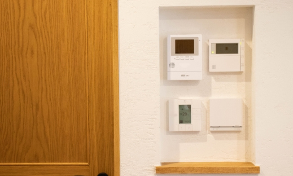 照明スイッチやインターホン、給湯リモコンをひとつのニッチにまとめると、壁がすっきり見え、生活動線も整いやすくなります。